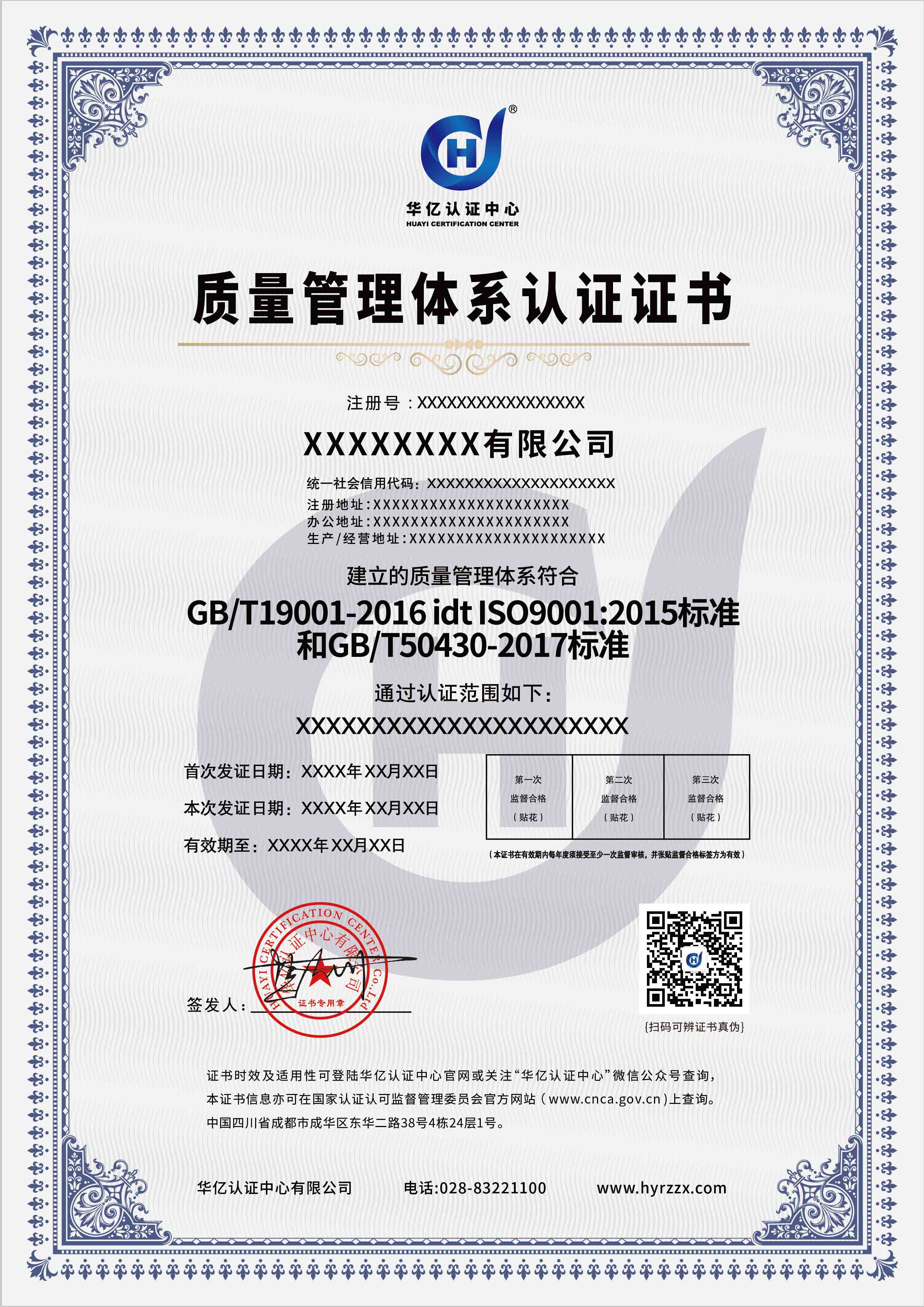 工程建设施工企业质量管理体系认证证书