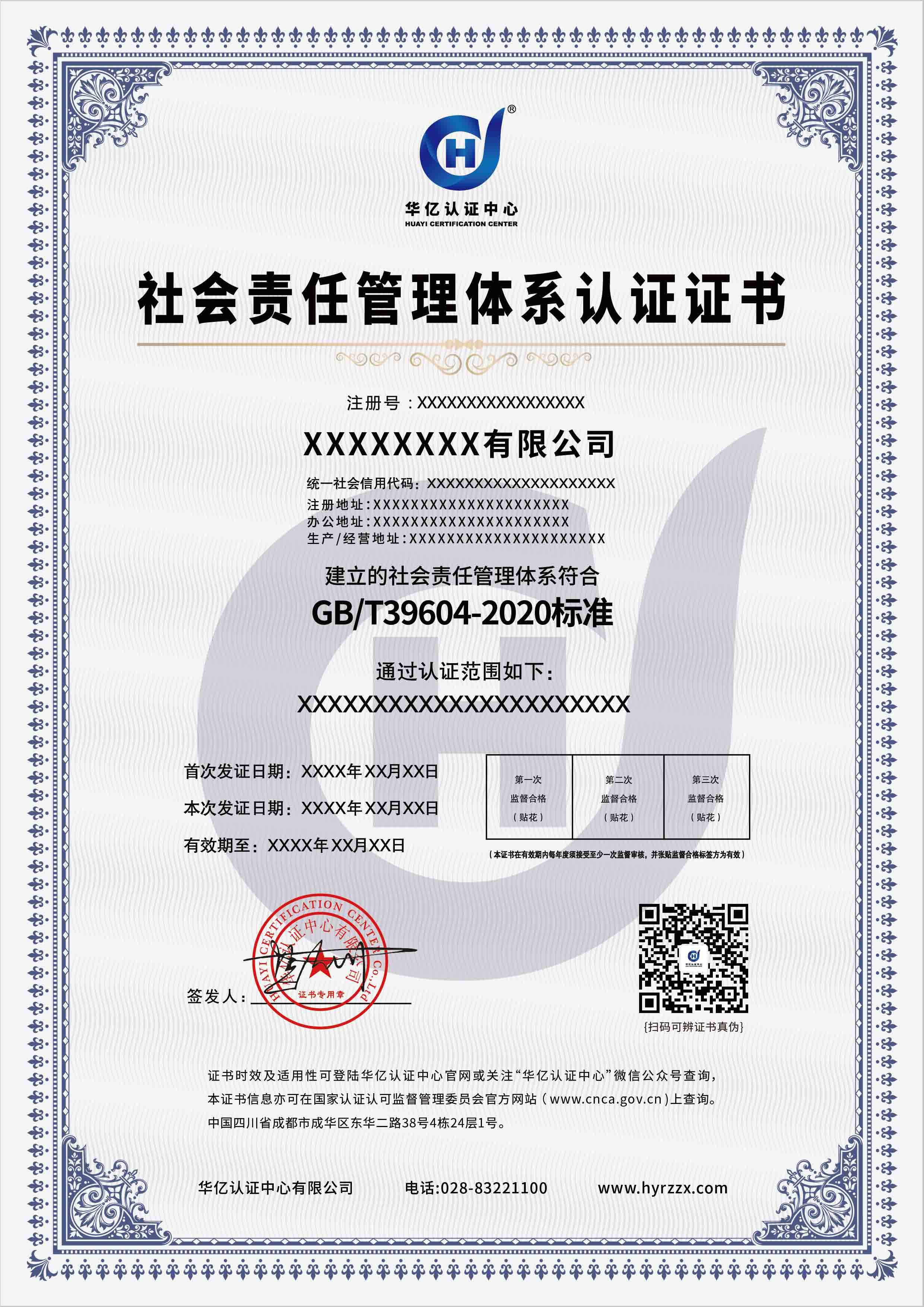 社会责任管理体系认证证书