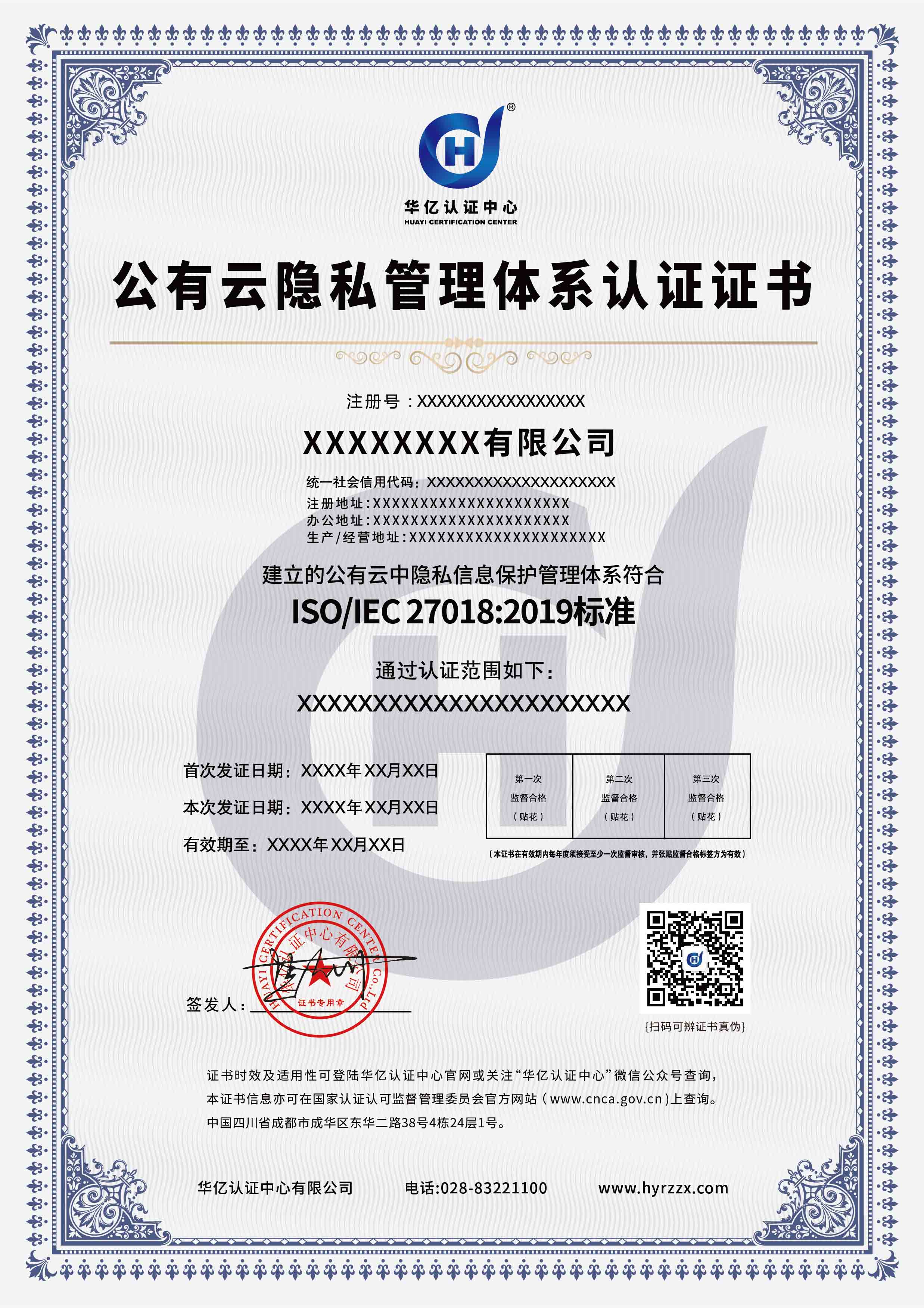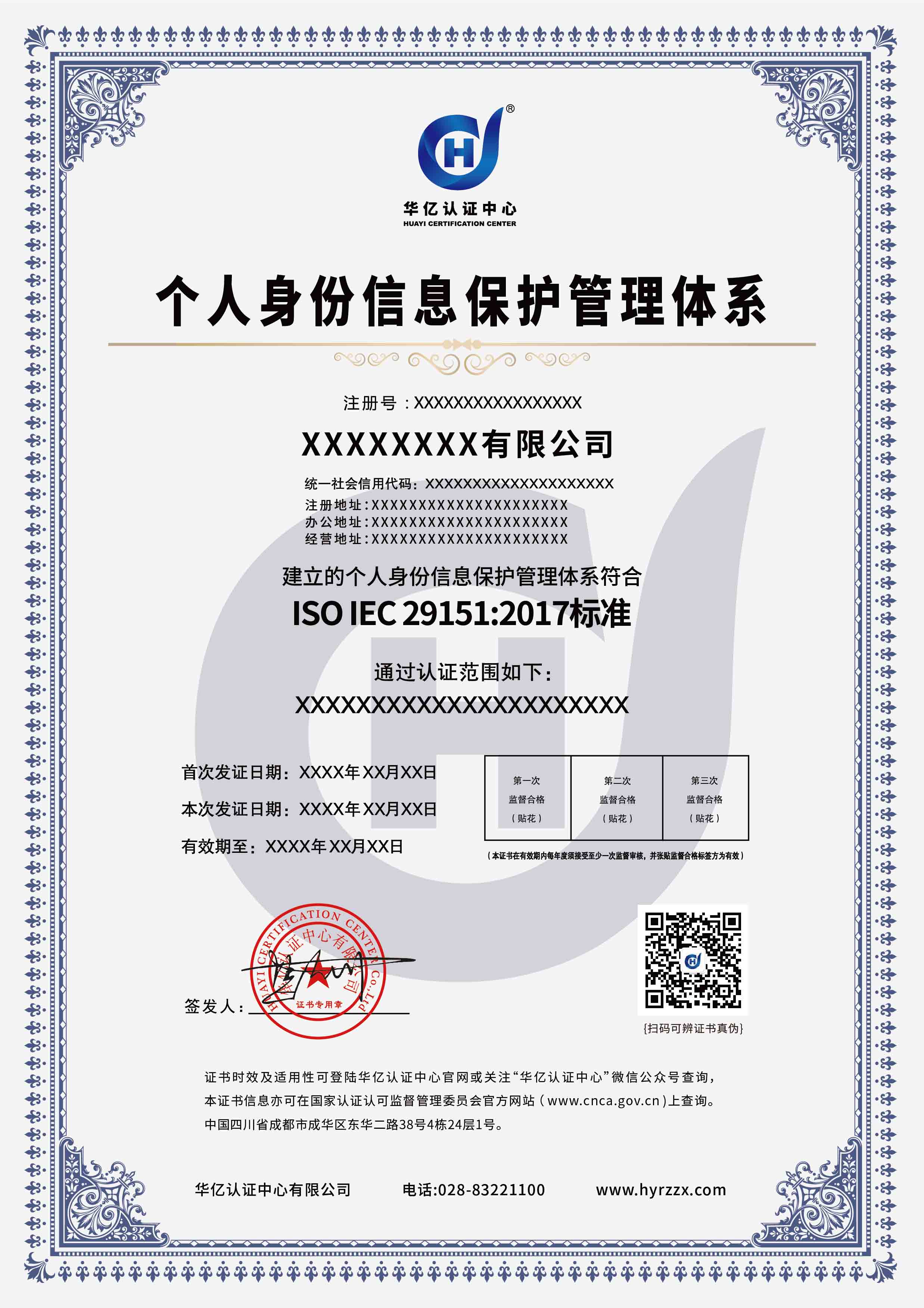 个人身份信息保护管理体系认证证书