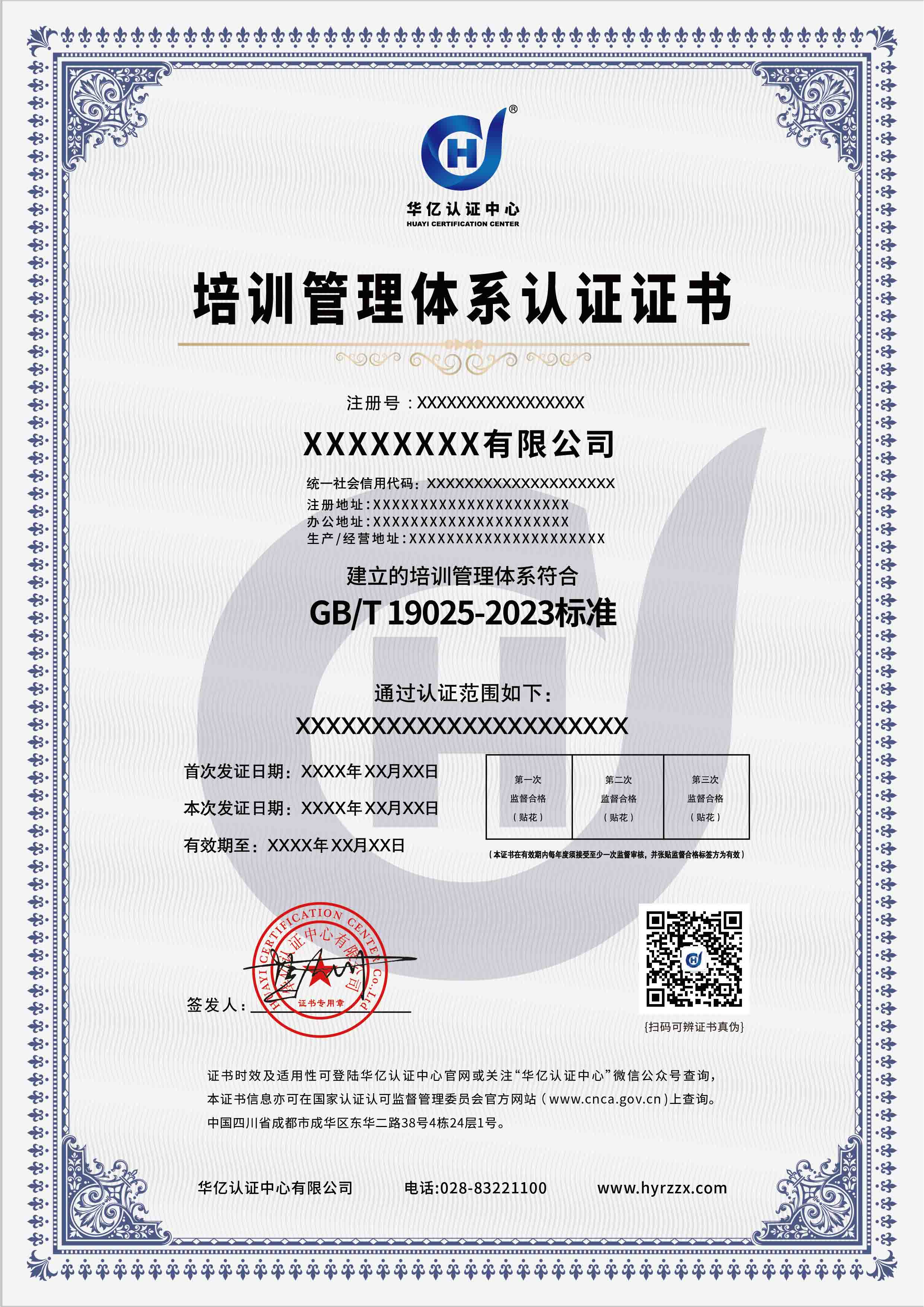 培训管理体系认证证书